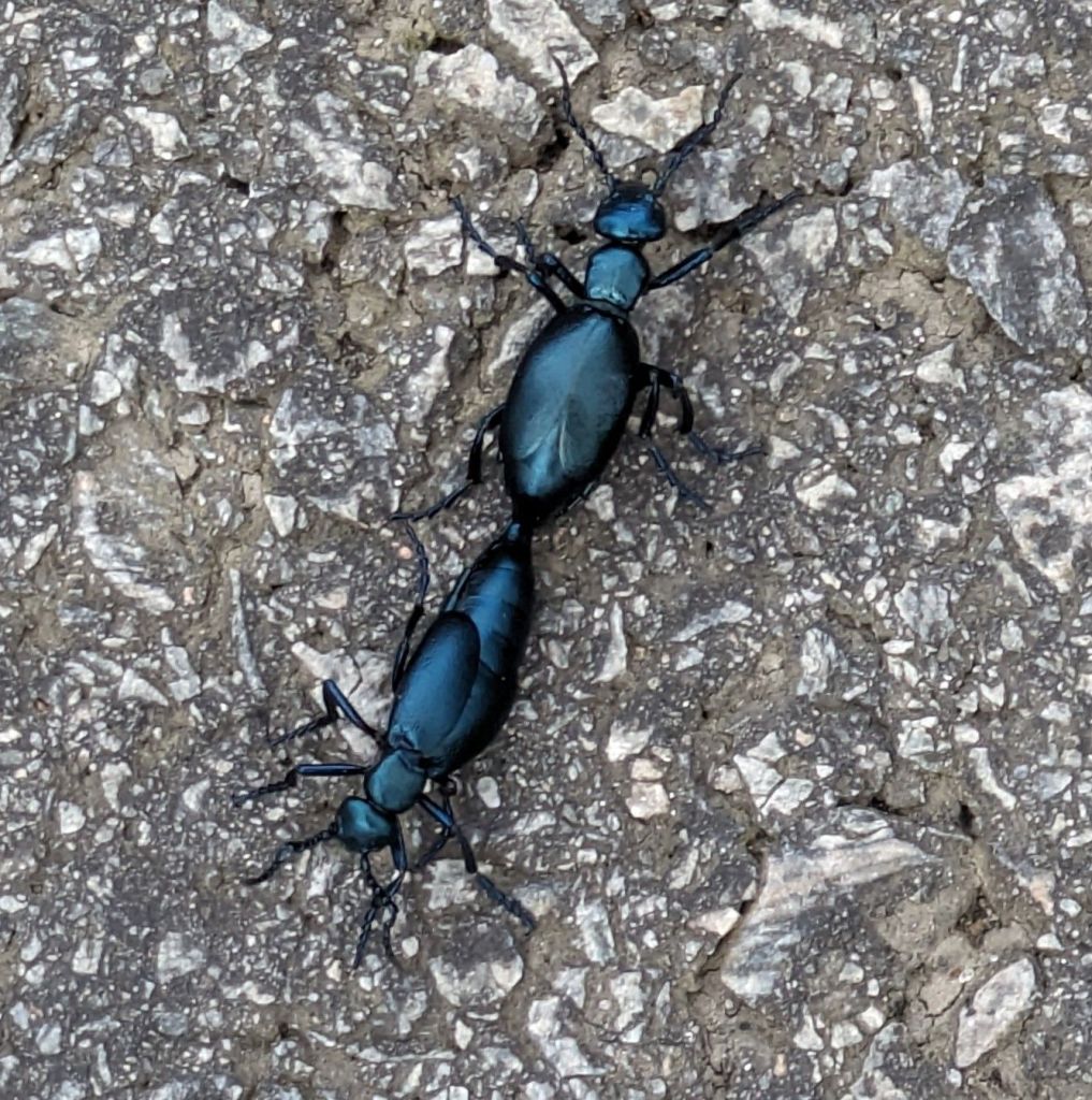 The one at the top was forging ahead, and the one behind was walking backwards as fast as they (no dodgy genders assumptions here!) could go. They are conjoined at the end of their abdomens. Fighting? Sex? Luckily, I know a naturalist who will tell me all. But it was a very funny sight