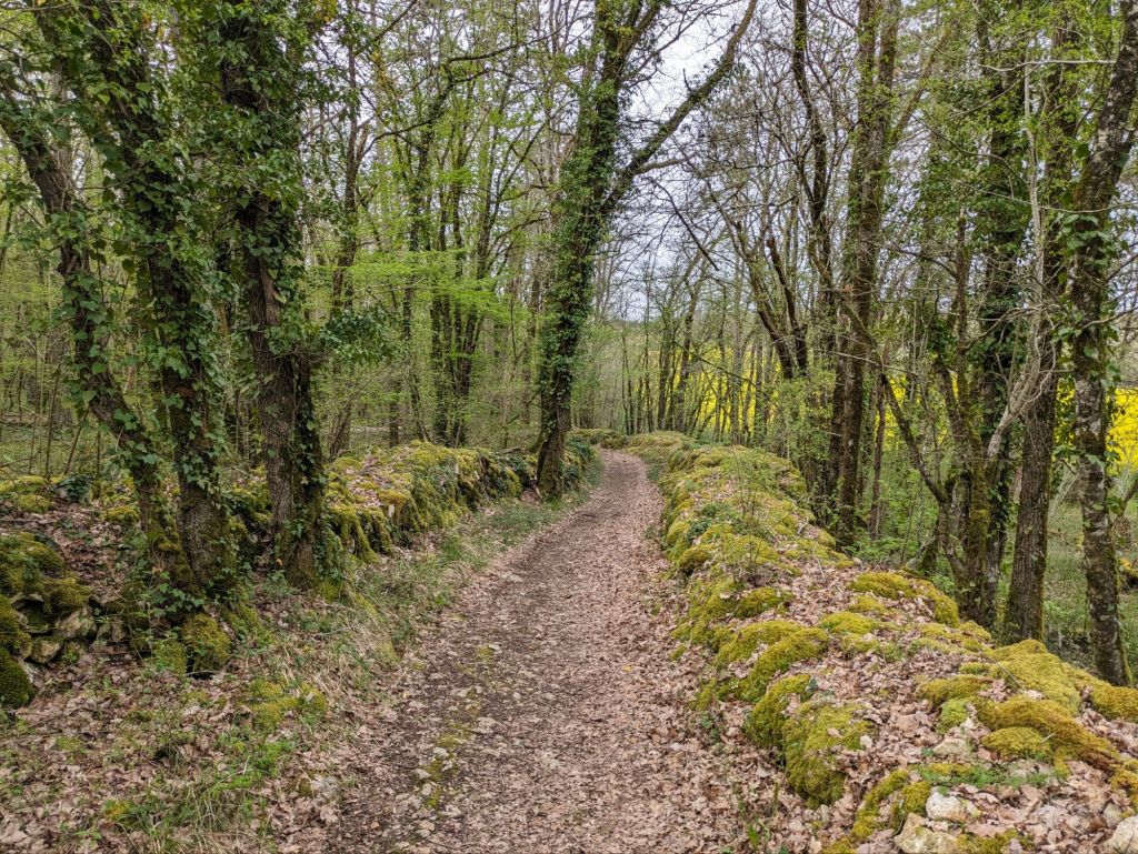 We continued through rolling country: it was getting very warm, but remained overcast. After a while I went on ahead. We then had some considerable climbs into a ten kilometre stretch of forest walking, some of it through ancient mossy chalk and flintstone lined paths.