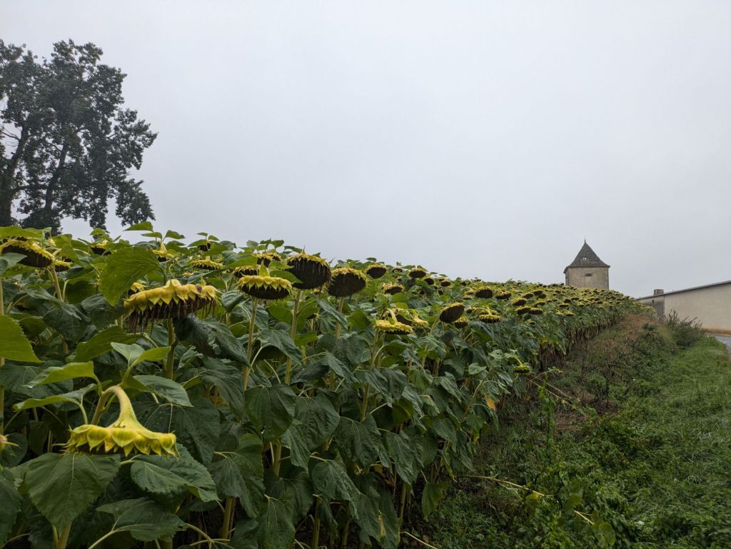 Nature was rather in hiding, though I did see two cats, on different occasions, sitting in the wet road staring at the ditch, hoping for a careless vole or fieldmouse. They ran away guiltily into the maize or sunflowers as I approached.