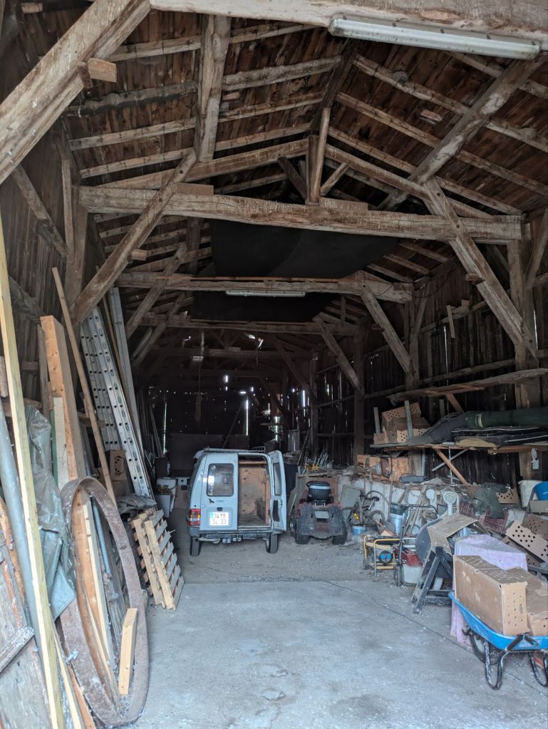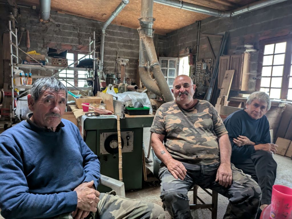 When I came down this evening after a rest, Michel was in the huge workshop on the side of the house with two friends who had dropped in for some wood and a chat.