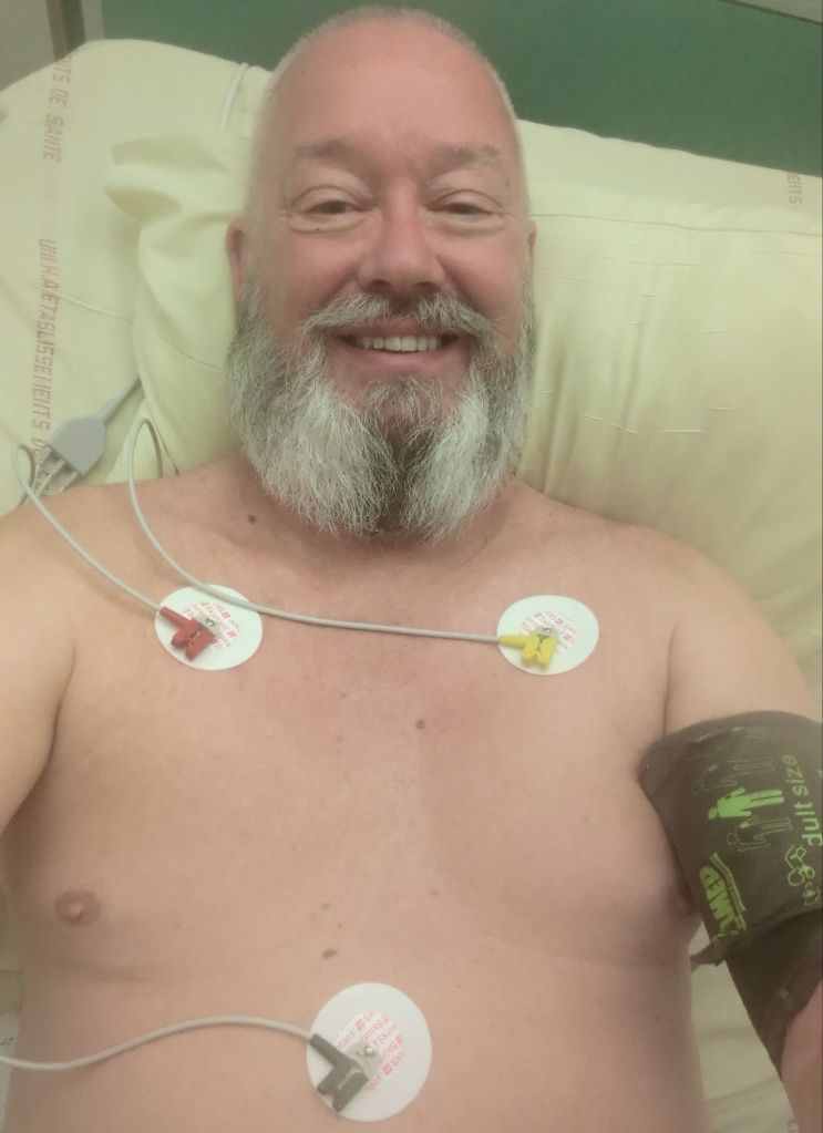 The downside is a kind of ruthless thoroughness. Once through triage, the investigations start. They get you on a trolley, take your clothes off so you can’t escape, and then get going. Temperature frequently, bloods (comprehensive), ECGs (x3), and blood pressure. Just for good measure they get a line into you and a saline drip up.