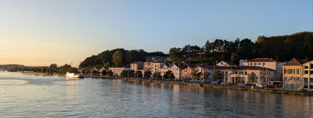 After an hour or so’s rest back at the hotel, I went back over the bridge to find some food. Now the sun was out, and Bayonne looked wonderful.