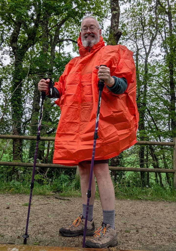 I wound my way through the back streets out of town, and about two kilometres later arrived at the start of a “green way” – formerly a railway branch line that would take me to Captieux. It was then the heavens opened, and the next two and a half hours were walking in heavy rain. At least the walking was easy and flat. This time I had bought a poncho big enough to go over me and my rucksack, and I am delighted to report that it performed beautifully.