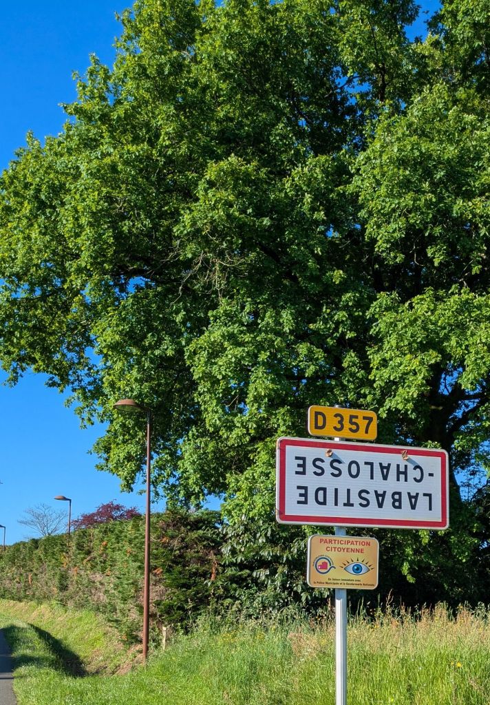 Turning town name signs upside down is a protest I have seen before (at Saint Aster, as I recall). There, it was a pro-Occitan protest, here, I imagine, a pro-Basque one. What amused me was the neighbourhood watch notice underneath – they weren’t doing much of a job in this case!