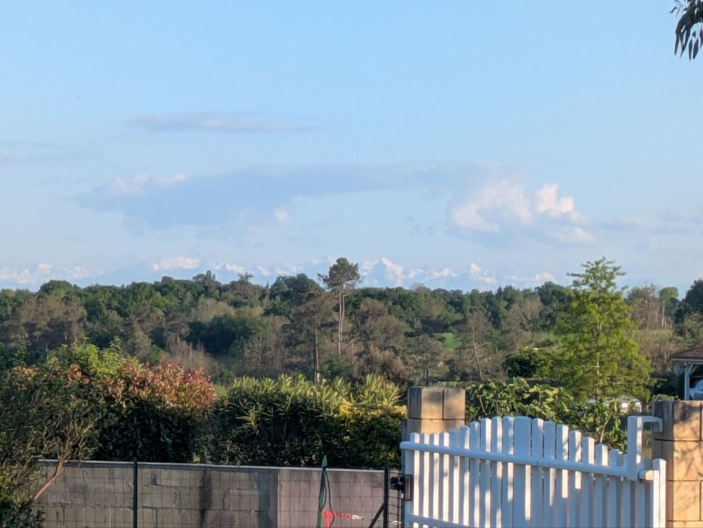 Tomorrow, I have a 16 km or so walk to Orthez. The weather is supposed to be like today. So, sunscreen and hat. And the Pyrenees getting ever closer. When I get there, I will look for a stamp for my pilgrim passport and then head by train to Bayonne where I will rest my still complaining feet before heading home on Friday. I’ll bid you goodnight with view of the mountains in the evening sun – it is the view from outside our gite.