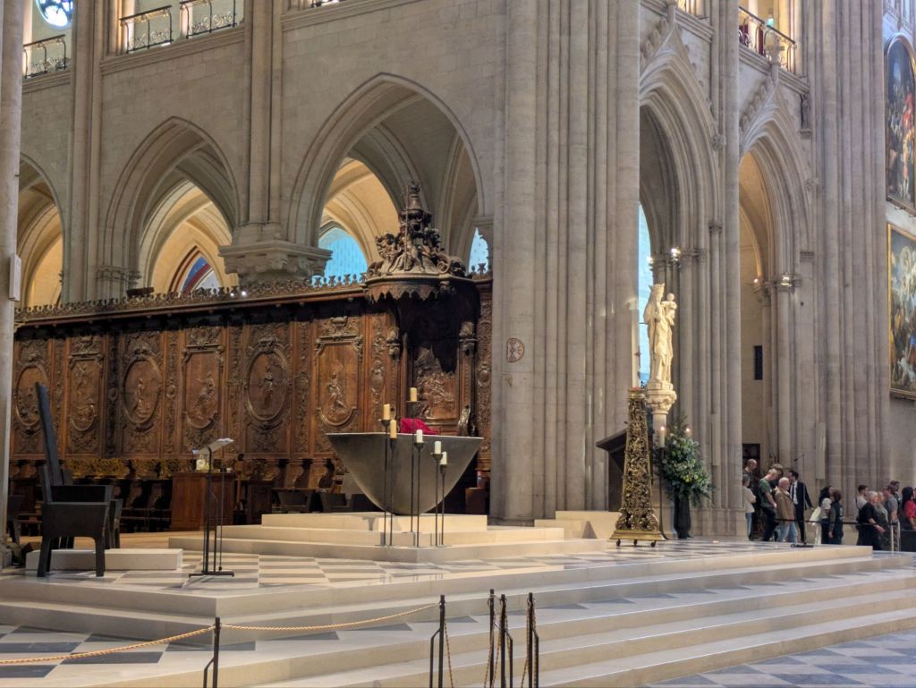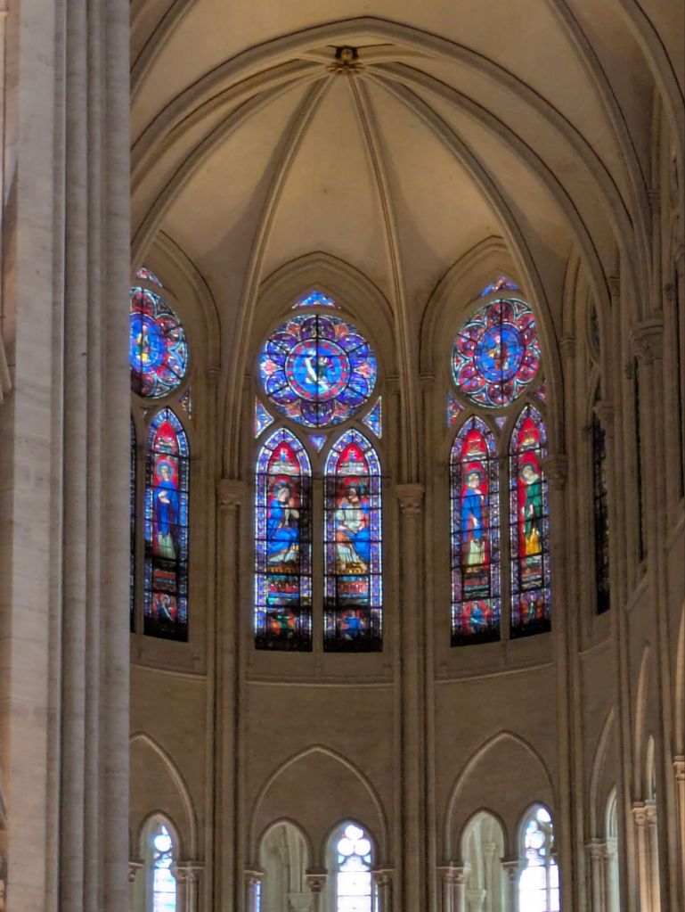 Those who knew the old Notre Dame will remember how dim and gloomy it was. But this church just glowed with light. So much was lost that new things had to be done, and modern paintings and tapestries adorned the walls of Northern aisle chapels – all of a high quality, and with a colour palette that used a lot of blue. Some glass was saved and looked as good as ever, but new windows had been commissioned, and the number of clear windows greatly increased.
