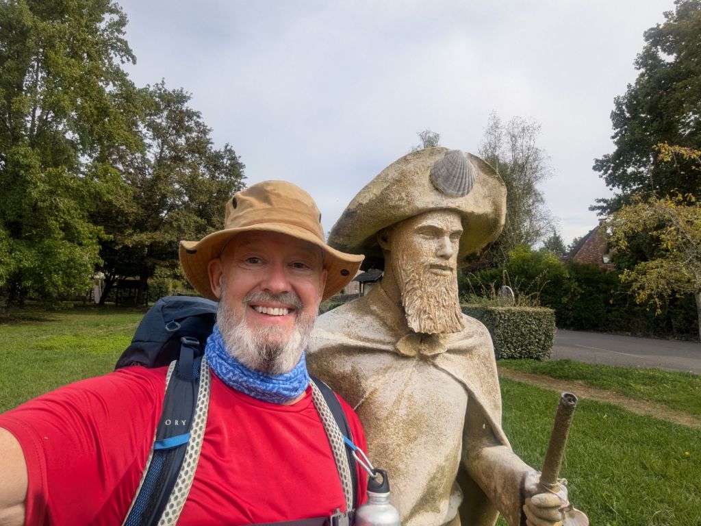 There were long climbs and long descents today, the longest of which brought me down to l’Hôpital d’Orion. An ancient centre for care of pilgrims, it is now little bigger than a hamlet. All that remains of the hospital buildings is the tiny church of St Mary Magdalene. A statue of the Pilgrim tells you that you’re on the right path.