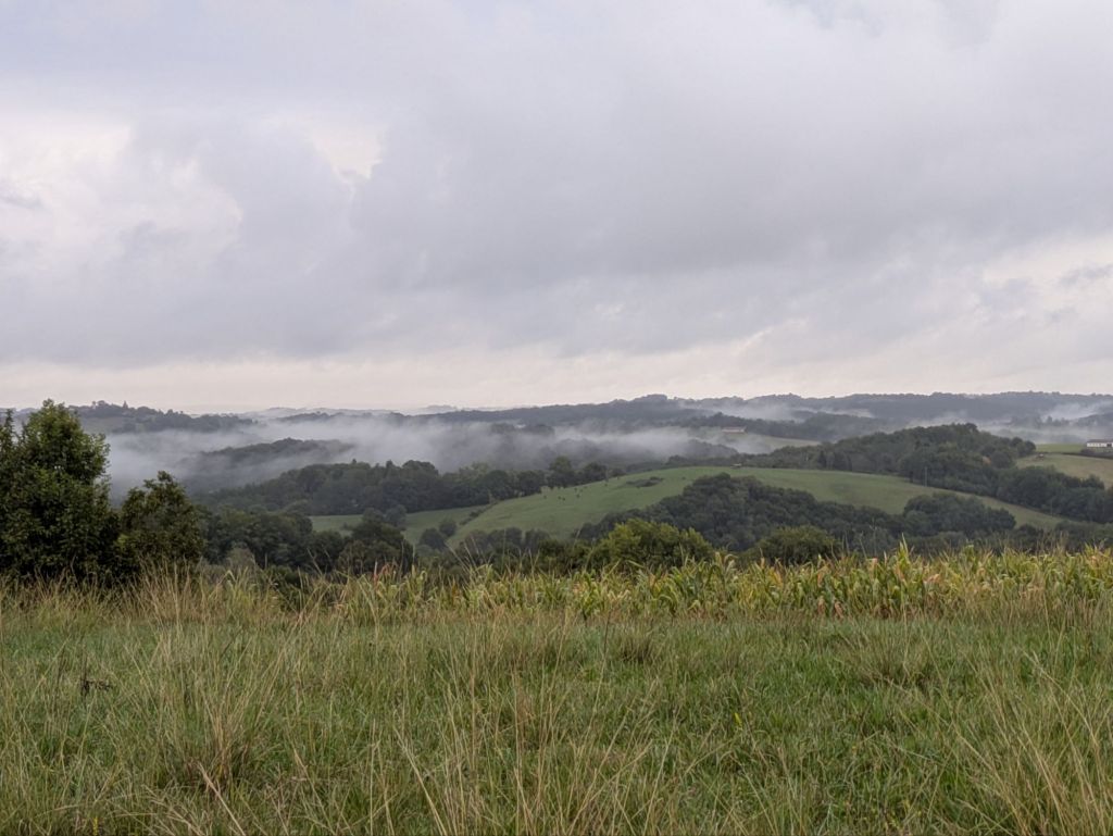 My hostesses at Les Étoiles were kindness itself, but nevertheless I did not sleep well. Perhaps it was the humidity. I was woken in the night, briefly by the heavy rain. In the morning, it was ten degrees cooler and very overcast with low cloud. Not as beautiful, but much nicer for walking!