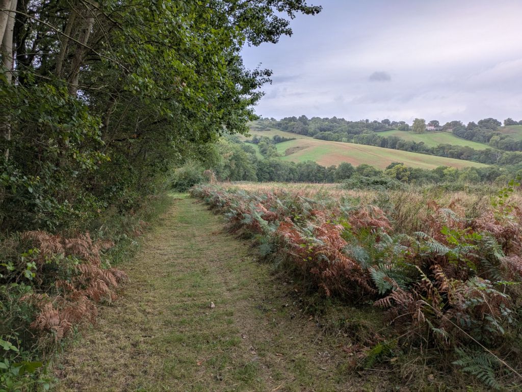 I set off at 08:45, and had to walk two kms back the way I had come to join the route. But thereafter I had a really wonderful morning’s walk through woods and forests and across fields.