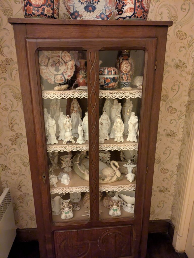 I found Villa Mon Rêve without difficulty. My host, Pascal, is a man in his late 70s, who has lived in this house all his life. It is a large 1930s villa (no photos as it is shrouded in scaffolding at present), built by his paternal grandparents for his parents as their wedding present! Grandfather, father and Pascal have all been the village’s monumental masons. But he has no family to hand that on to, so the line has ended. The house is charmingly full of all kinds of decorations and objets (think 47 Easthorpe), but with extra and very French addition of wall-papered ceilings! The pilgrim visitors sleep in the very room in which Pascal was born, he told me proudly.