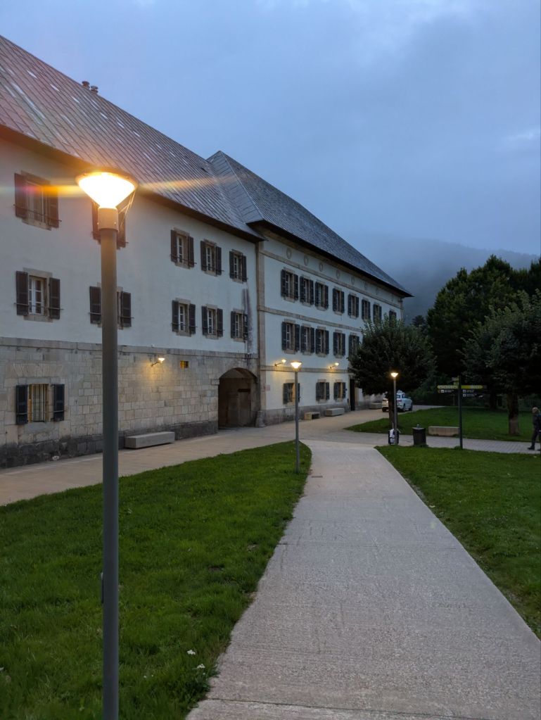The lights came on in the abbey dormitory at 06:15, breakfast was at 07:00, and we had to be out and away by 08:00. It had not been a restful night. Twenty or so people jammed into a room with bunk beds. I have to say that my years of going on the top bunk are over, but I managed it last night because I had to. I did not sleep well.