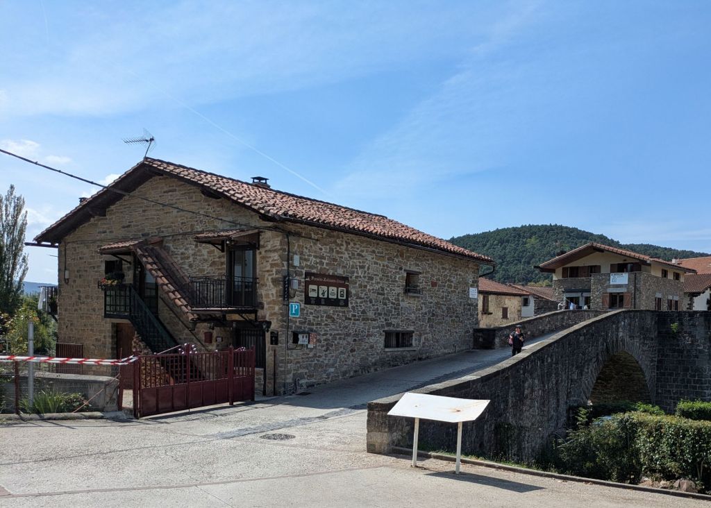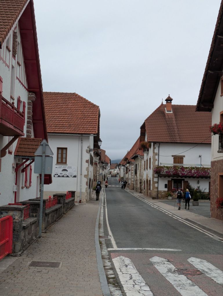 The day was very overcast, though the temperature rose as we got lower down. By 11am we were in Bizkarreta, where I said goodbye to Simon and Jackie, my walking companions for the last two days. There are a huge number of people walking the Camino these days: Roncesvalles takes four hundred a night. Last night more than that turned up and latecomers had to walk on, or were accommodated elsewhere. The system required to process everyone was managed by volunteer teams, who come for a week or two: ours was Dutch.