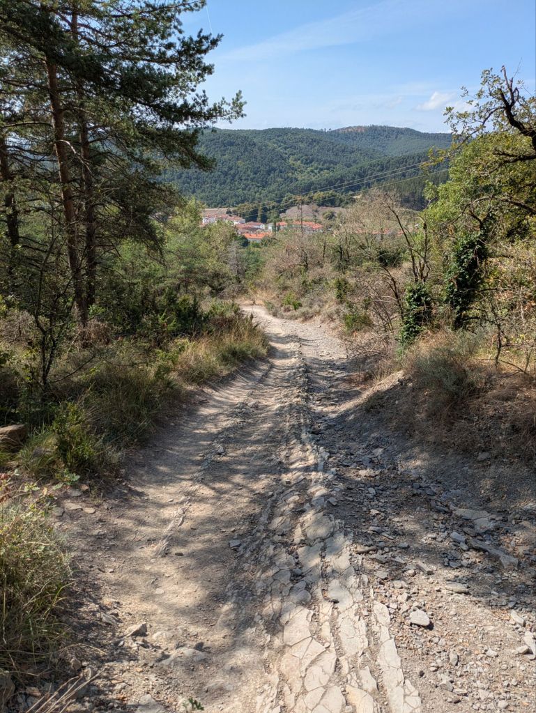 From there it was four kilometres steeply downhill to Zubiri (550 metres), via a path marked by some very tricky stratified rock.