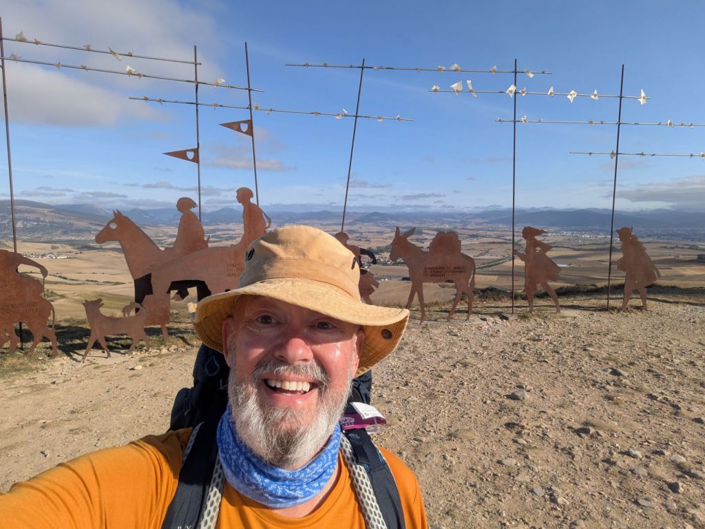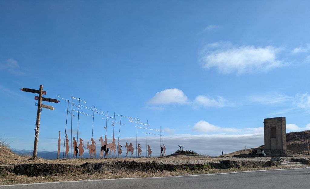 Then the road started to rise before us as we began the climb up up to a gap on the ridge that guards the southern approaches to Pamplona. These days it is marked a huge number of wind turbines on the ridge. But the pass is still the the Alto de Perdón, or the Heights of Forgiveness.