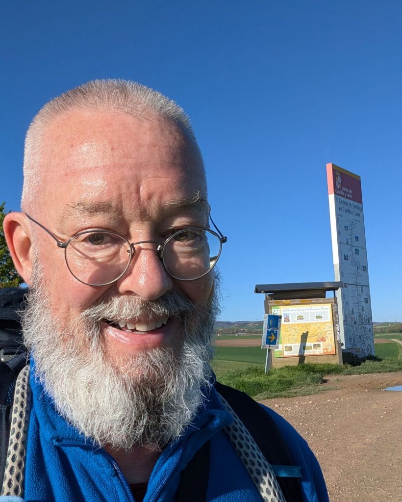 A few kilometres the other side of the village, walking through huge wide prairie-like fields, we passed from little La Rioja into the (by comparison) huge Junta of Castilla y Léon. Nothing much changed, and compared to the sketchy waymarking of some parts of the Vézelay route, both La Rioja and Castilla y Léon have plentiful big clear Camino route by markers with lots of supplementary yellow arrows to show the way in towns. Whereas in France I sometimes had to walk with the Buen Camino app open and in my hand all the time showing me the way, in Spain I am pretty convinced that you could do the whole thing without any guidance aids at all.