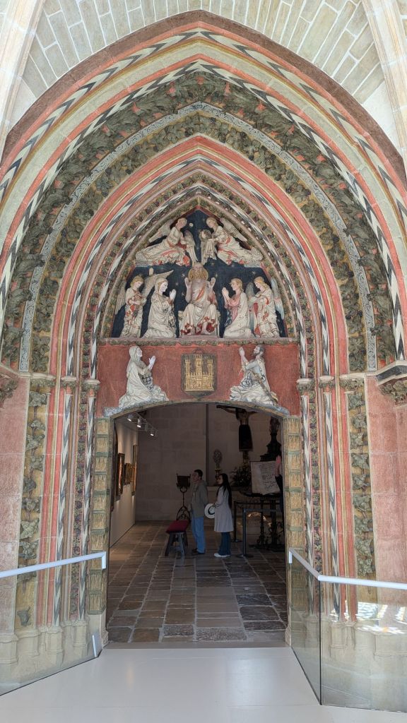 The polychromatic door to the strangely humble chapter house